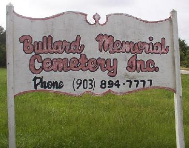 Bullard Cemetery is located on the east side of FM 2493 about a mile south of the intersection of FM 344 & FM 2493. There are several graves marked with stones, or unreadable funeral home markers, or just unmarked. Cataloged June 2003 by David Wooddell. Partially Updated Oct. 2004