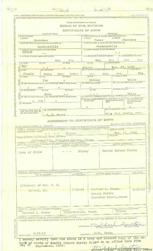 Montie Lenore Shirey (d/o Benjamin I. Shirey & Katie Gifford)