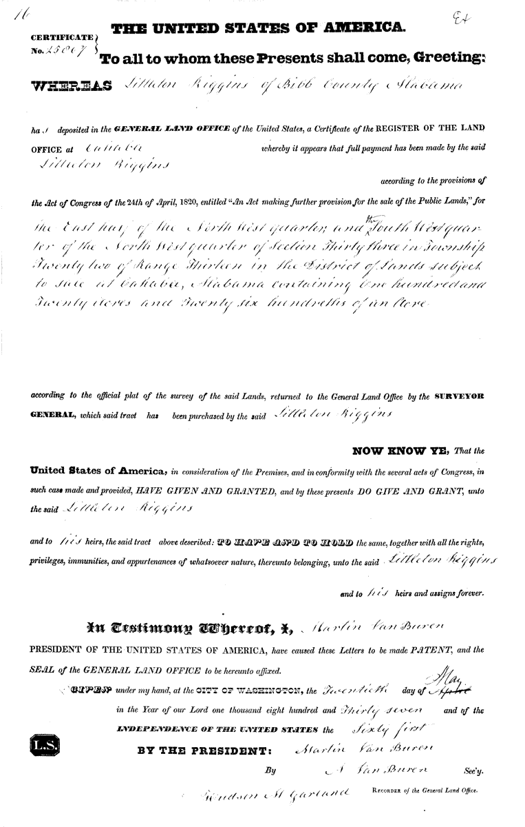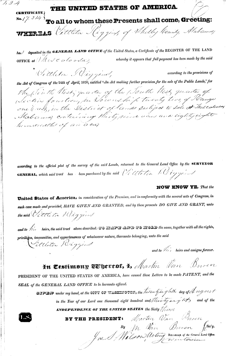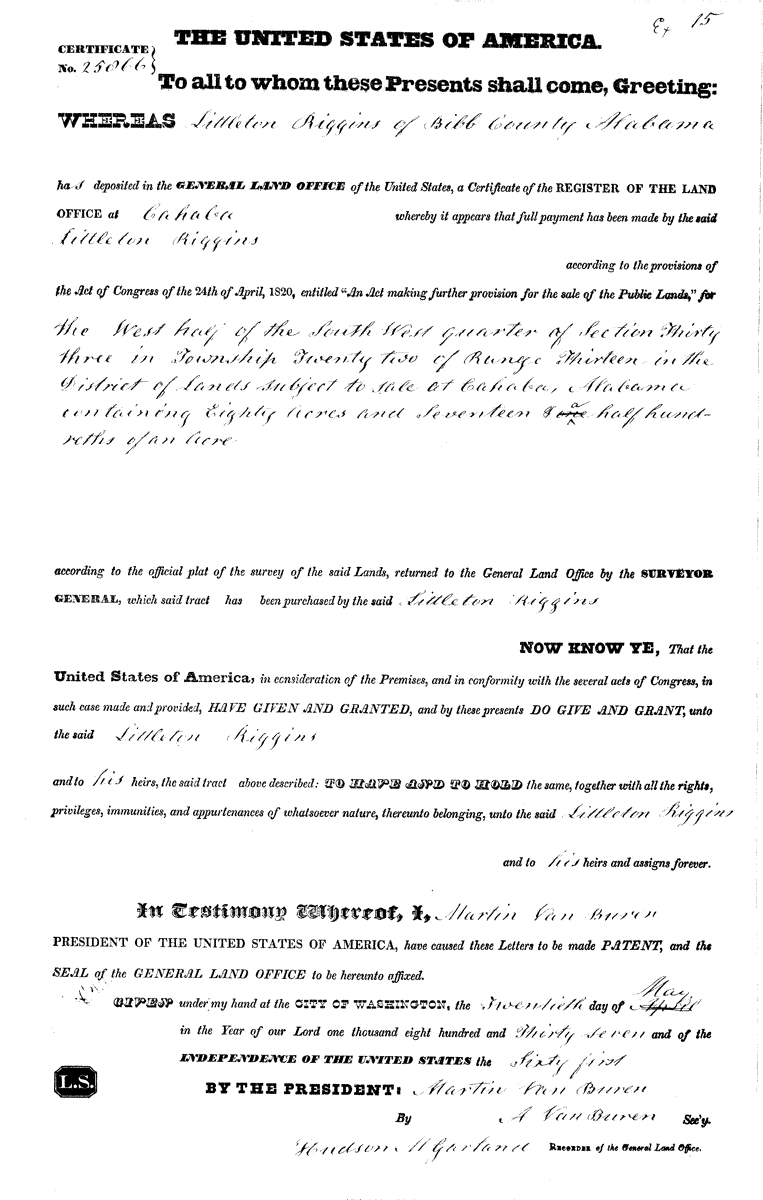 36. Howell Sammons (husb. of Francis Riggins) Bibb & Shelby Co. AL(7)