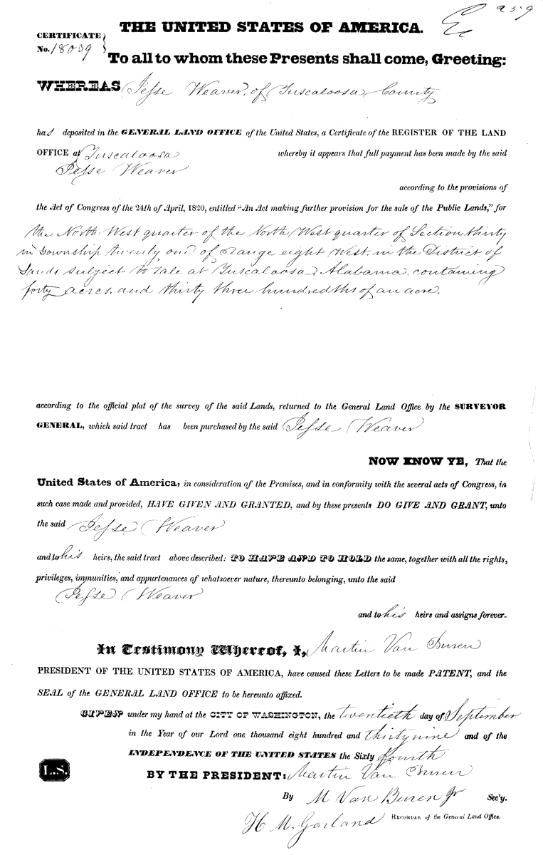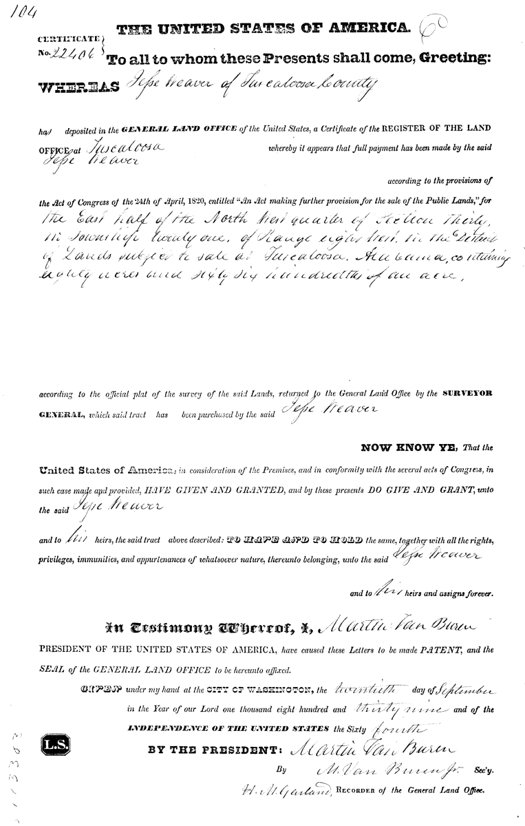 Hiram T. Wooddell Tuscaloosa Co. AL